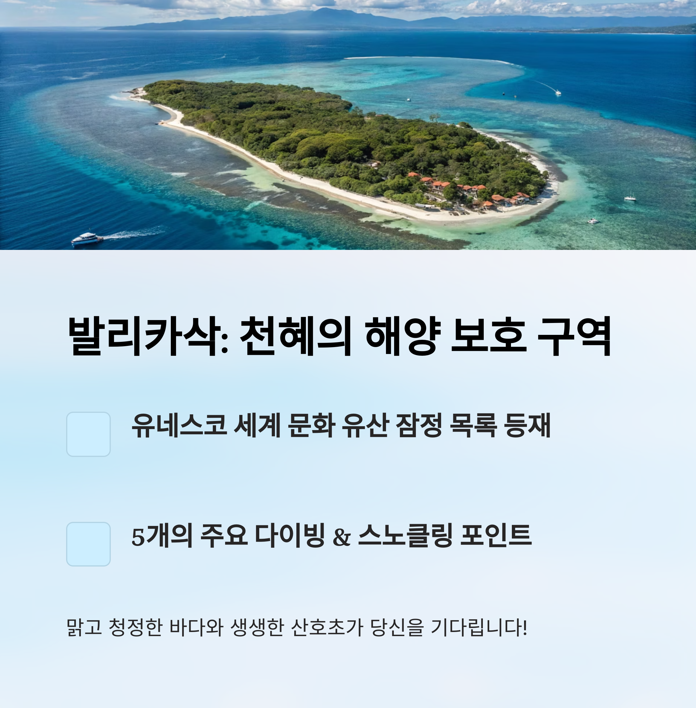 발리카삭 호핑투어는 단순한 해양 액티비티를 넘어 자연과 교감할 수 있는 특별한 시간이 됩니다. 맑은 바다에서 거북이를 만나는 소중한 경험, 버진 아일랜드의 한적한 풍경, 새벽 바다 위를 가르며 돌고래와 마주치는 감동까지. 이 모든 순간이 여러분의 여행을 더욱 풍부하게 만들어줄 거예요. 사전 준비와 예약만 잘 해둔다면 잊지 못할 하루를 보낼 수 있습니다!