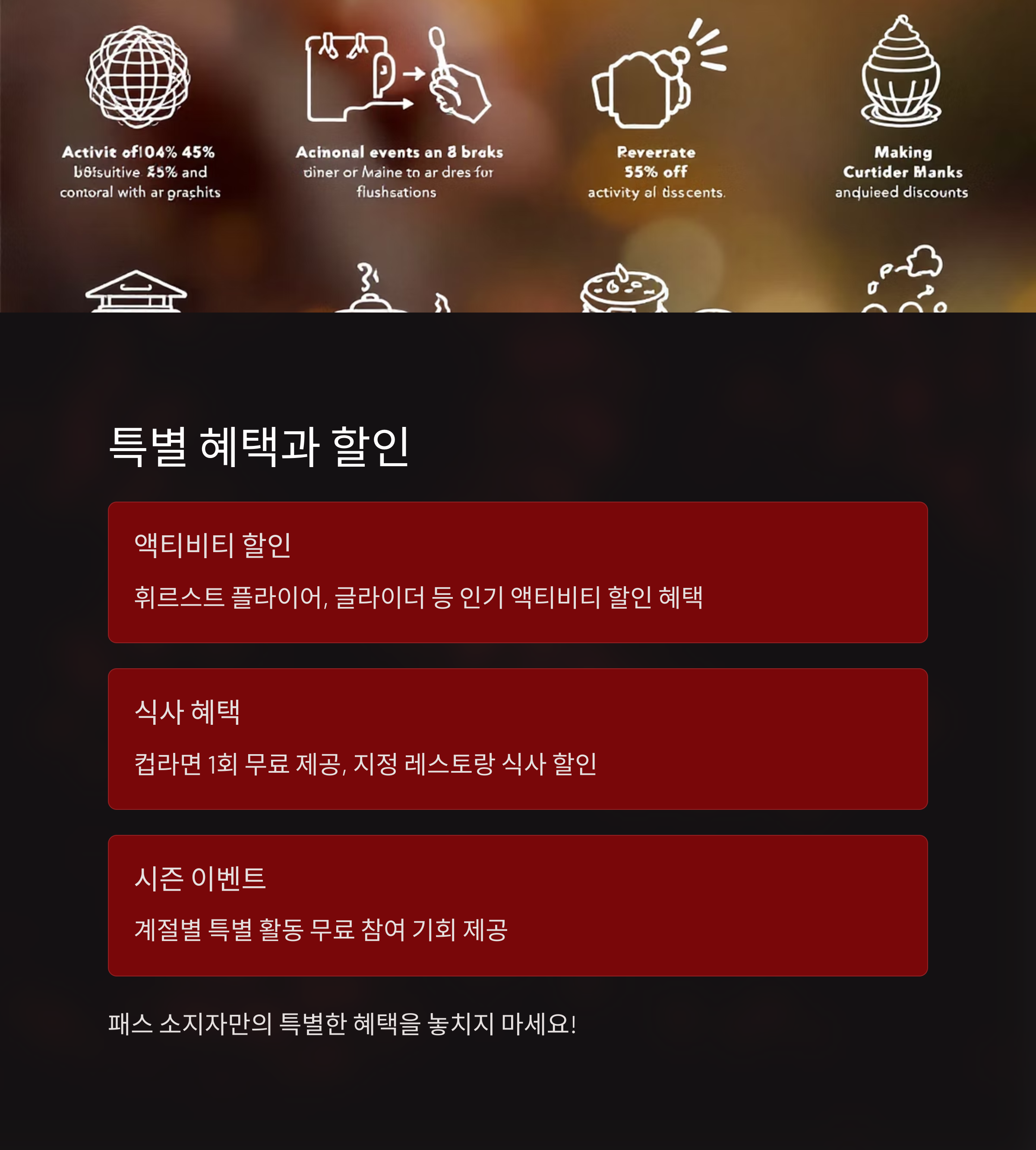 | VIP패스 혜택 | 산악열차 등 교통 무제한 또는 50% 할인 가능해요. |