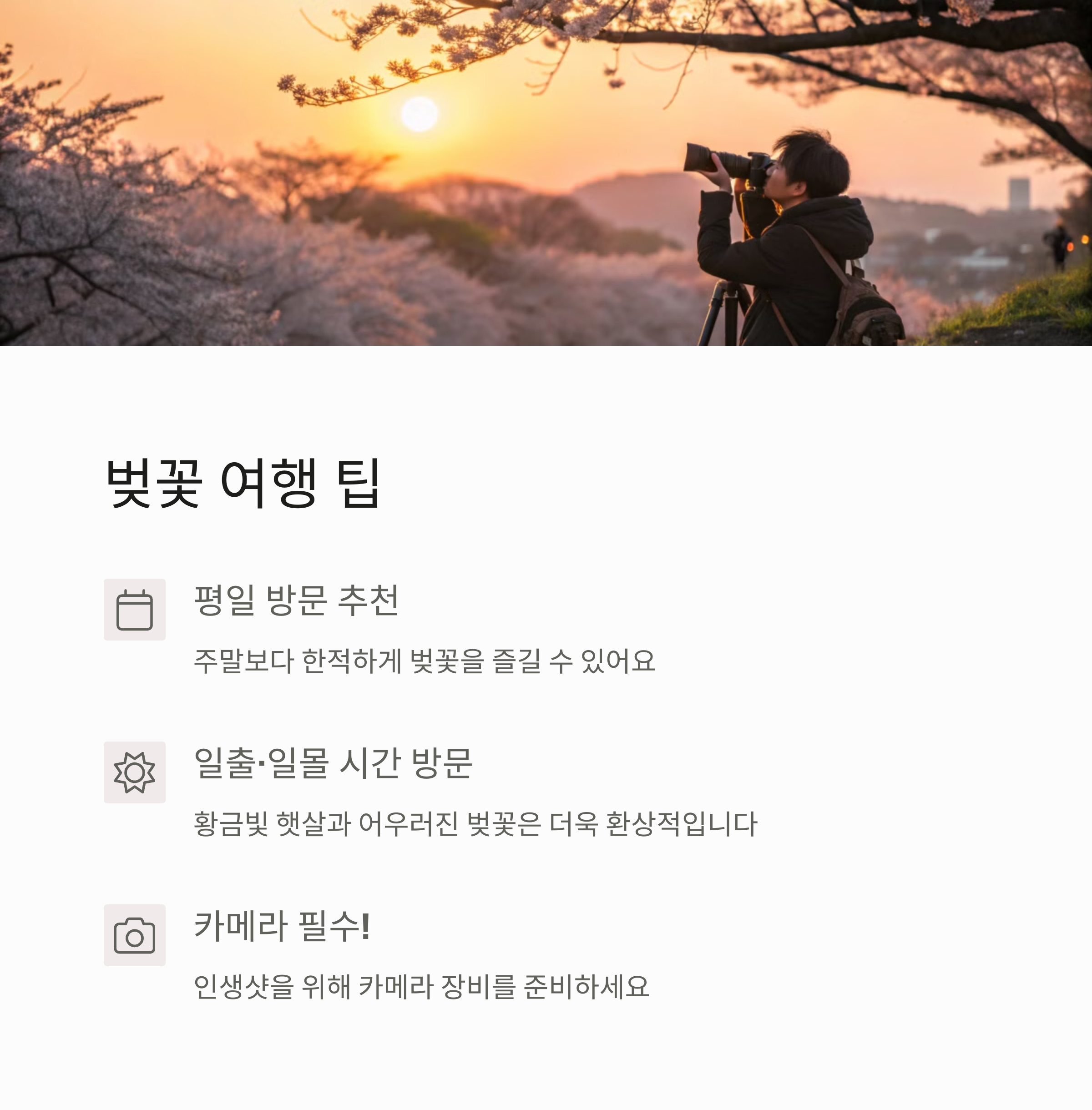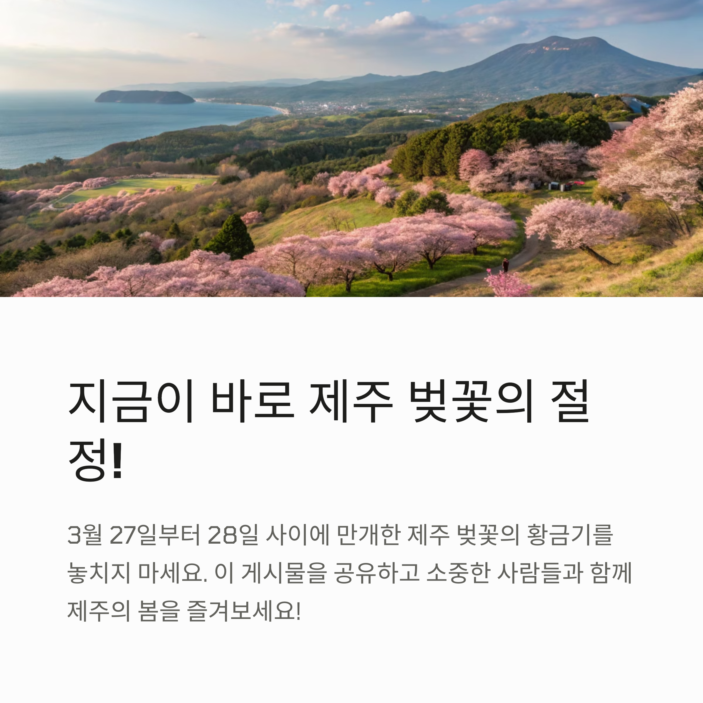 어떤 벚꽃 명소가 가장 기대되시나요? 여러분만의 제주 벚꽃 꿀팁이나 여행 계획이 있다면 댓글로 공유해주세요. 서로의 경험이 모여 더 즐거운 봄나들이가 될 수 있습니다.