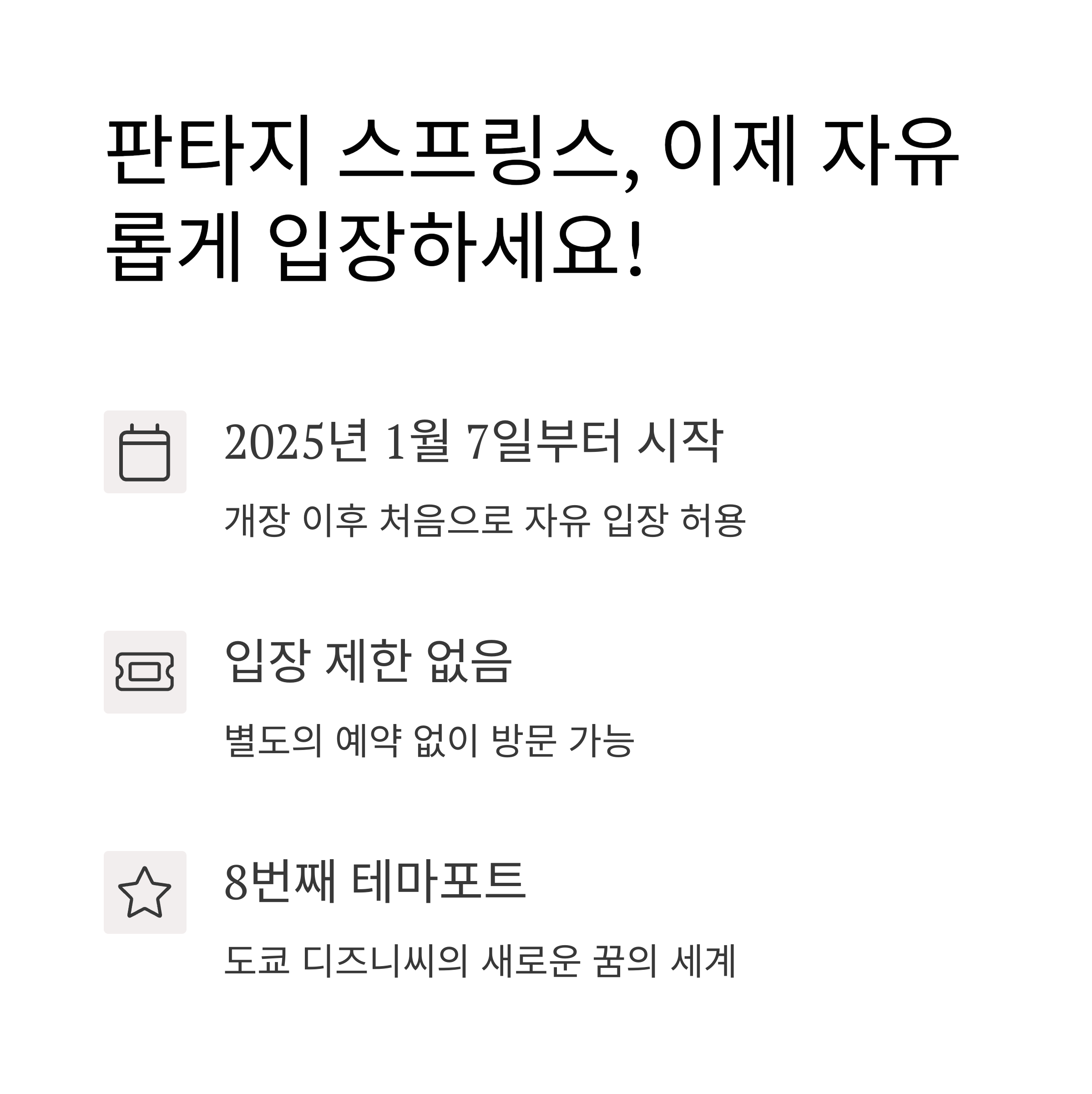 | 입장 제한 해제 | 2025년 1월 7일부터 입장 자유화 |
