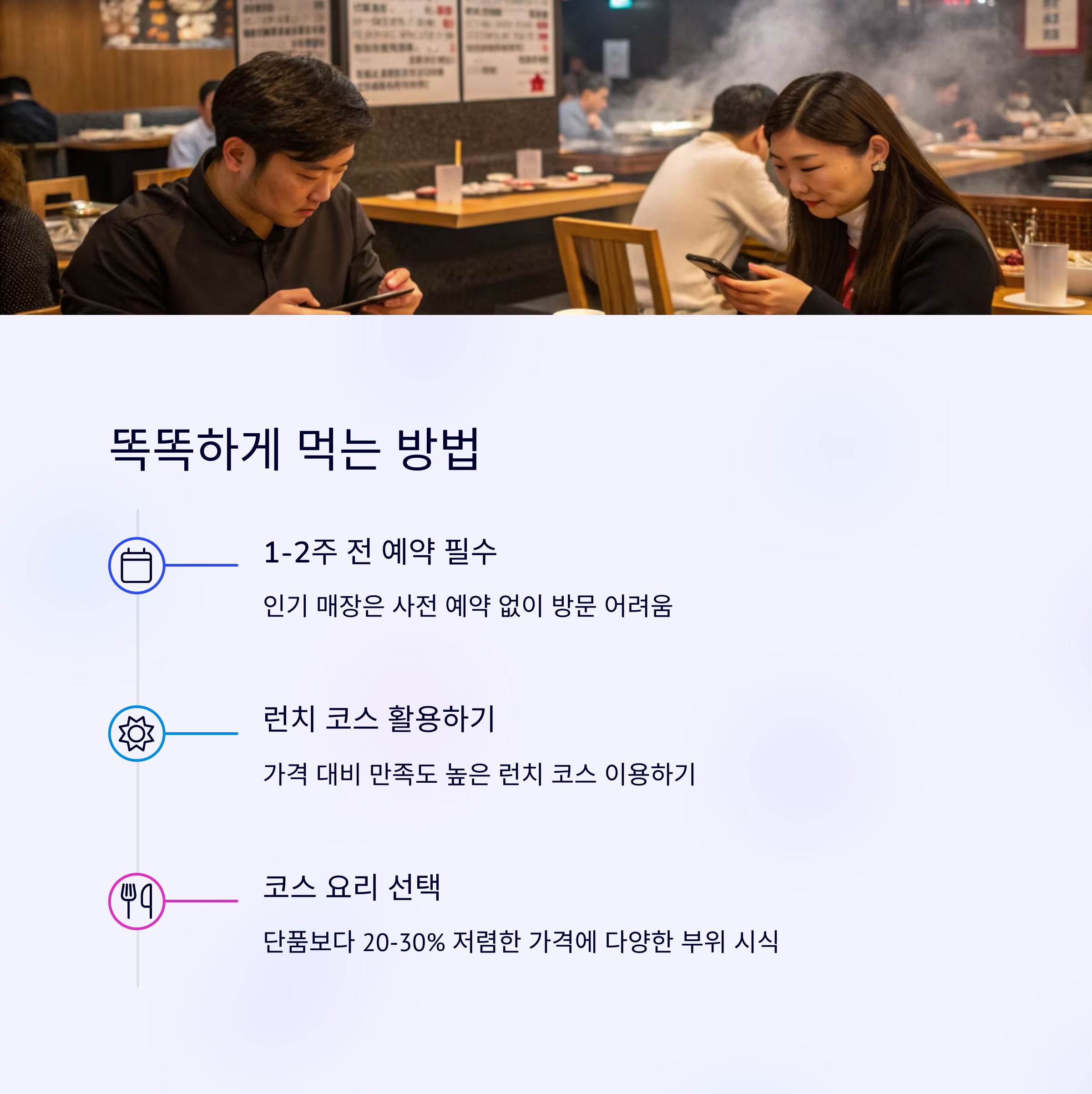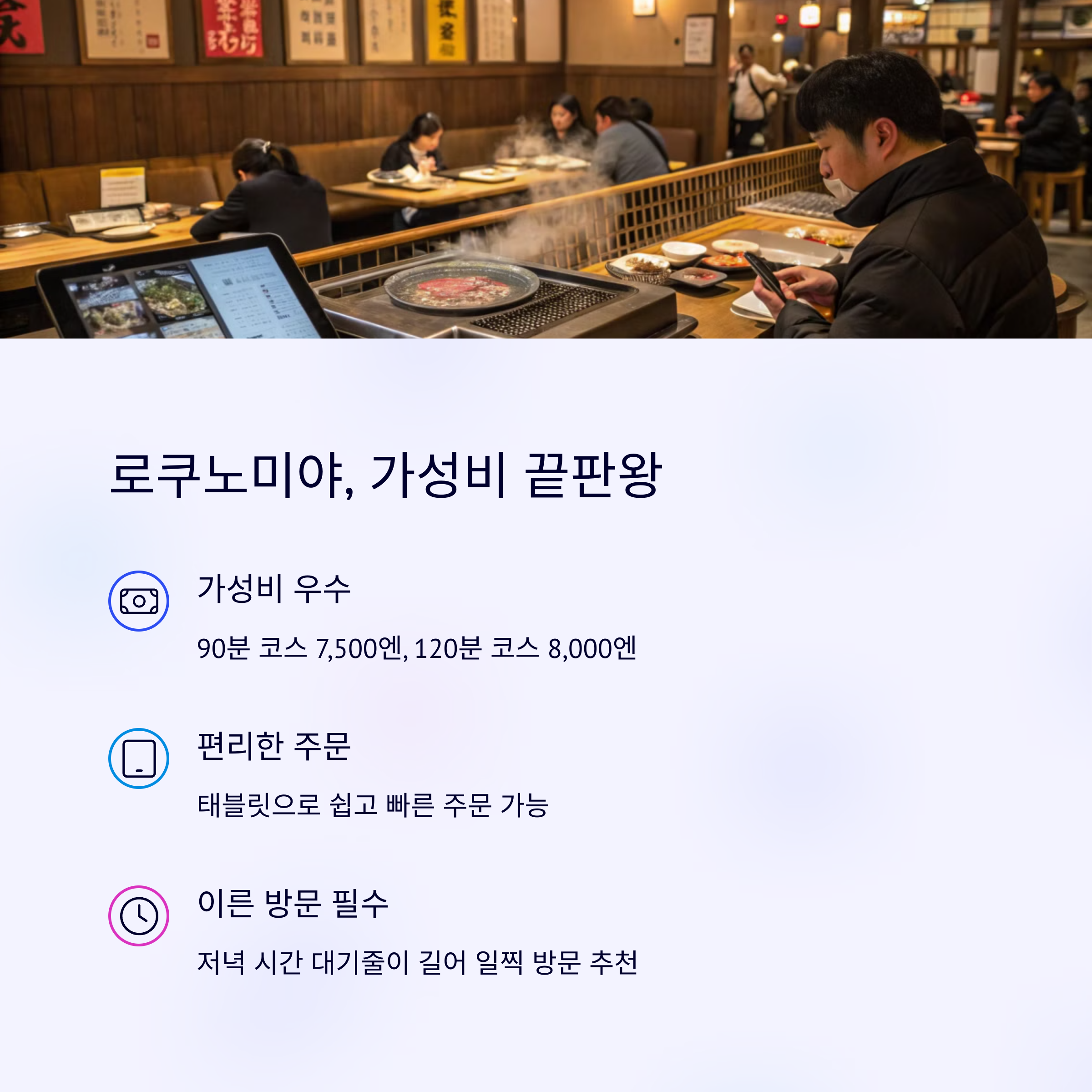 | 오사카 야끼니꾸 | 혼밥부터 기념일까지, 다양한 분위기 연출 |